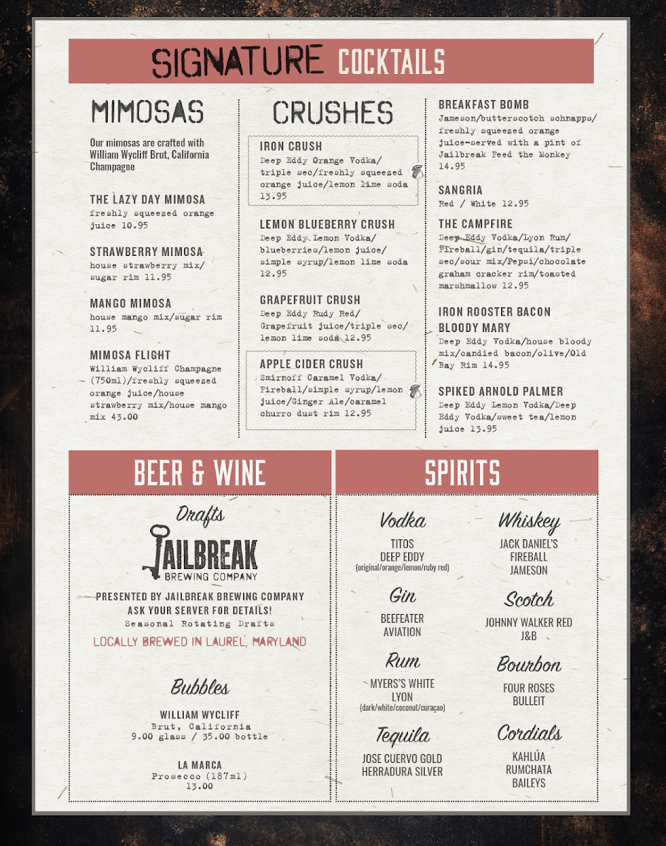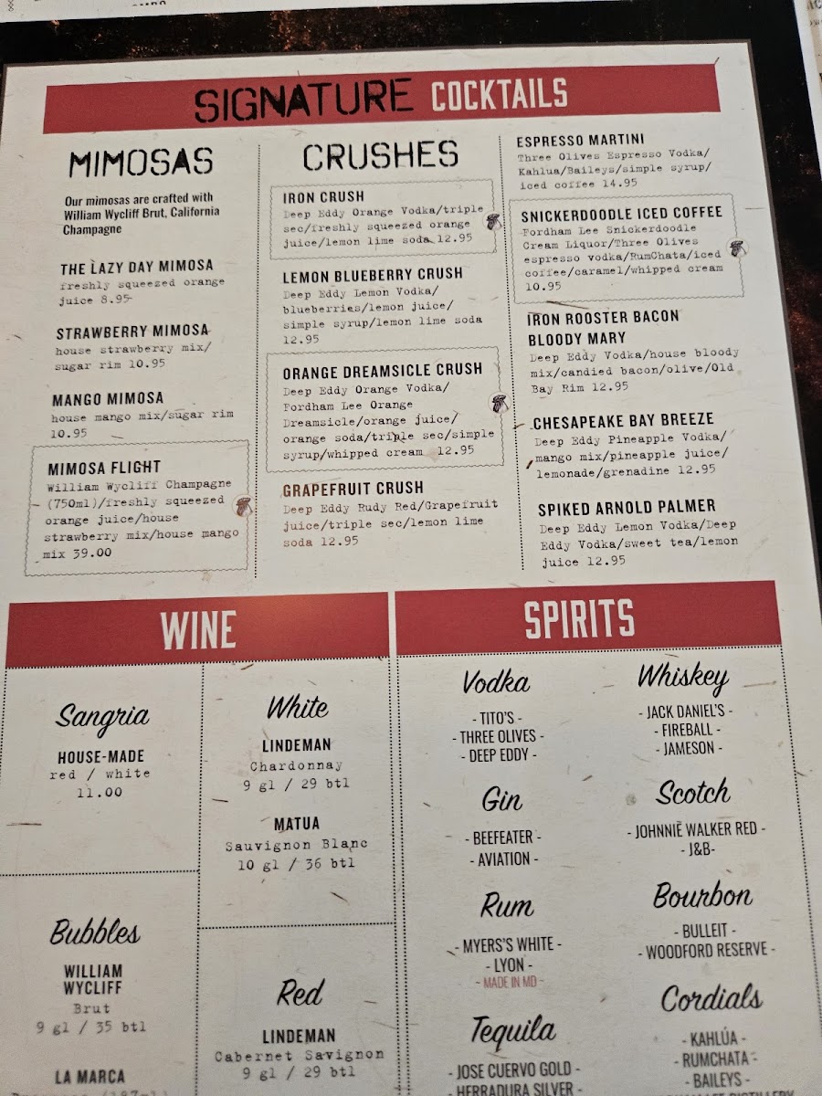 vodka / house bloody mix / pickled asparagus / bacon / olive / Old Bay rim