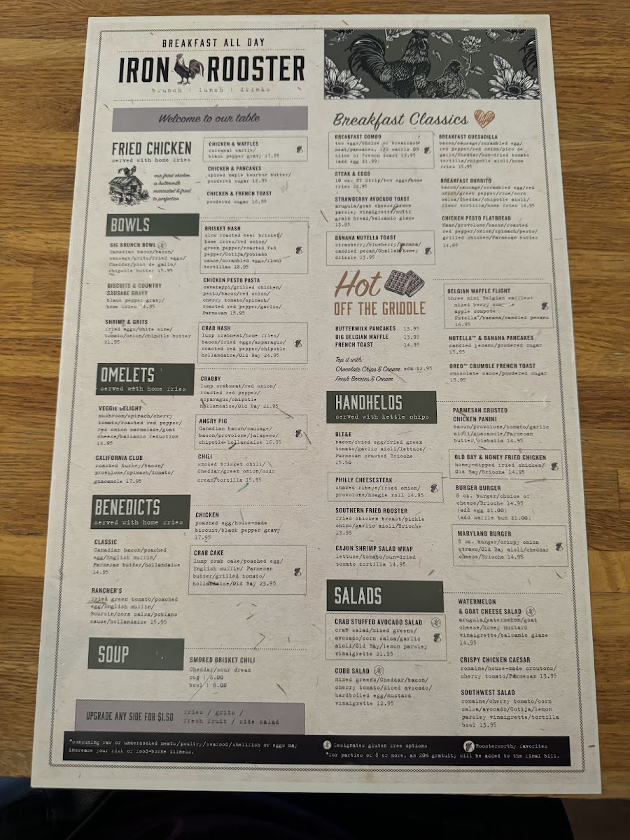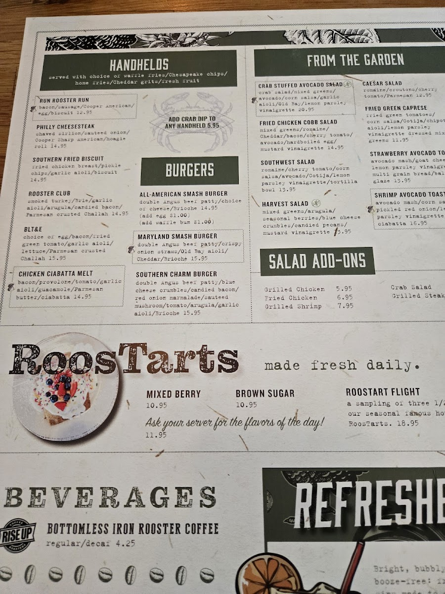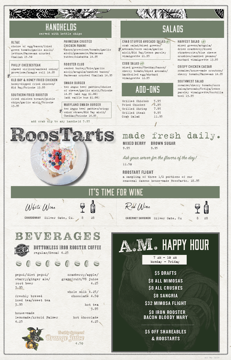 lump crab meat / home fries / bacon / poached eggs / asparagus / roasted red peppers / chipotle hollandaise / Old Bay
